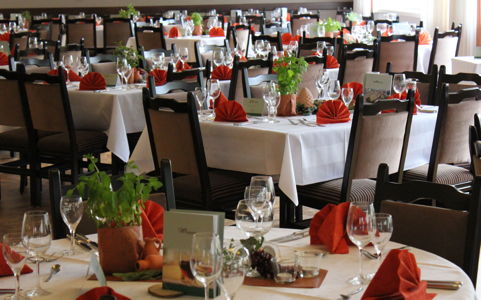 Wir bieten neben modernen und gepflegten Räumlichkeiten (ob große oder kleine Feier) auch die passende Bewirtung und eine große Auswahl an Menüs und Speisen, die wir in unserem Hause zubereiten.